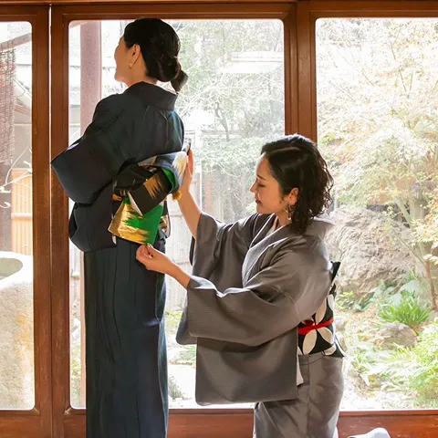 Kimono Dressing Experience海外で着付け師として活躍した経験豊富なスタッフが、着付けレッスンをさせていただきます。自分で纏った着物でそのまま風情ある道後の街を散歩。特別な思い出を残すお手伝いをさせていただきます。
